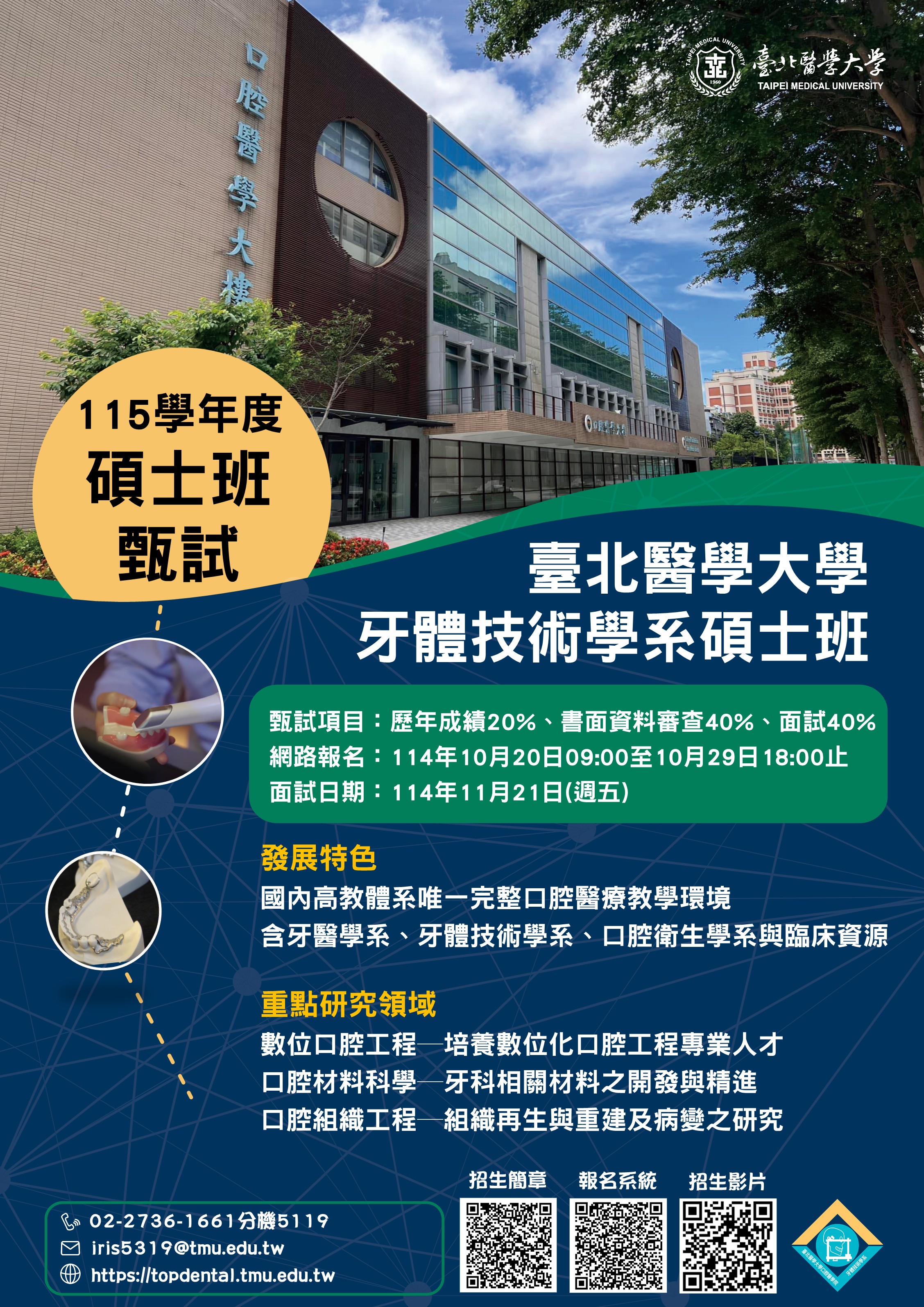 115學年度牙體技術學系碩士班甄試入學簡章公告